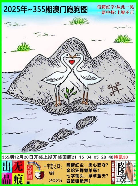 355期开奖时间2025年12月21 星期日)晚9:30开(农历十一月初二 鼠冲马)355期【欲钱买三羊开泰的生肖】